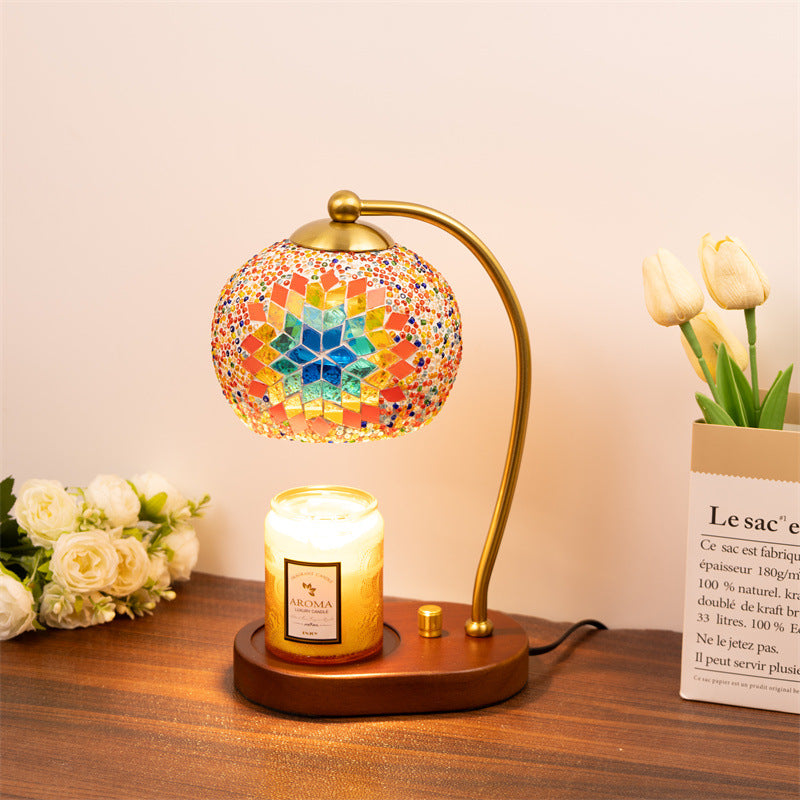 Our Summer candle warmer lamp catches eyes easily with a Behemian design, pieced by mosaic glass on the lamp shade, and constructed with an elegant wooden base. Perfect addition to bedroom or living room. Plus, candle warmers emancipates aroma from candles using no flames, which greatly increases safety to home. Create an visually pleasant corner with the Summer candle warmer lamp now.